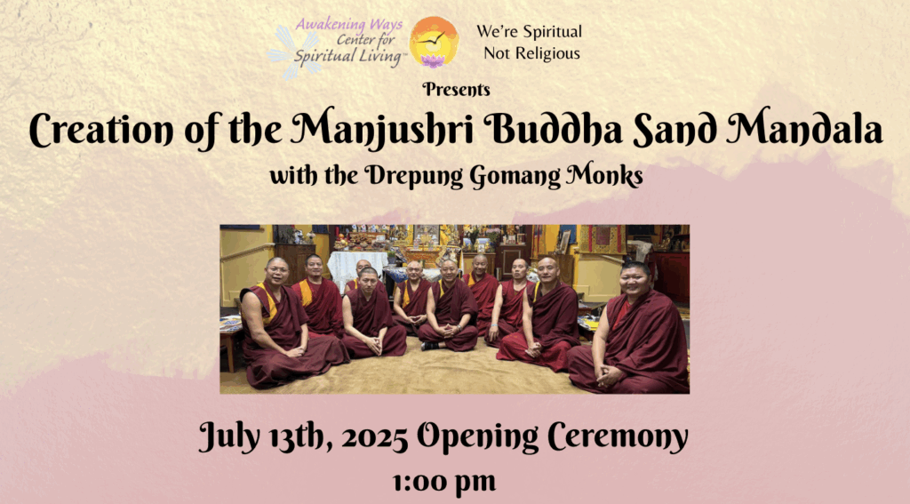 Join us for the Creation of the Manjushri (Wisdom) Buddha Sand Mandala with the Drepung Gomang Monks, led by Geshe Chaeden.