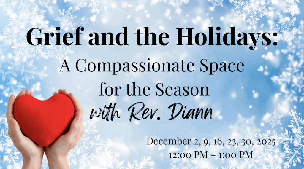 Grief and the Holidays: A Compassionate Space for the Season is A Weekly Drop-In Gathering with Rev. Diann Davisson