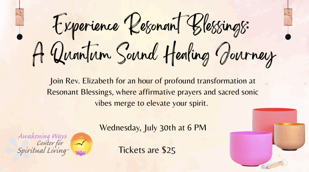 Join Rev. Elizabeth for an hour of profound transformation at Resonant Blessings, where affirmative prayers and sacred sonic vibes merge to elevate your spirit. Immerse yourself in the healing frequencies of sound, guided by uplifting words of affirmation that resonate at a quantum level. This immersive ceremony will harmonize your energy, awaken inner peace, and align you with universal light. Perfect for spiritual seekers and wellness enthusiasts alike.