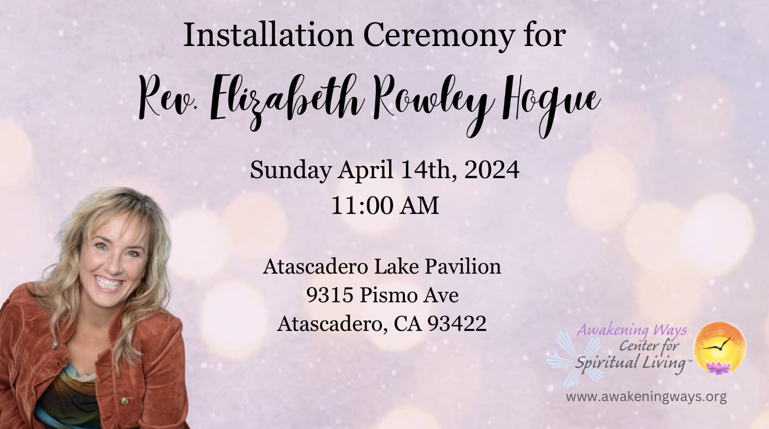 The Board of Directors of Awakening Ways Center for Spiritual Living joyfully and lovingly invite you to celebrate in the ordination of our Spiritual Leader: Elizabeth Rowley Hogue Join us Saturday...