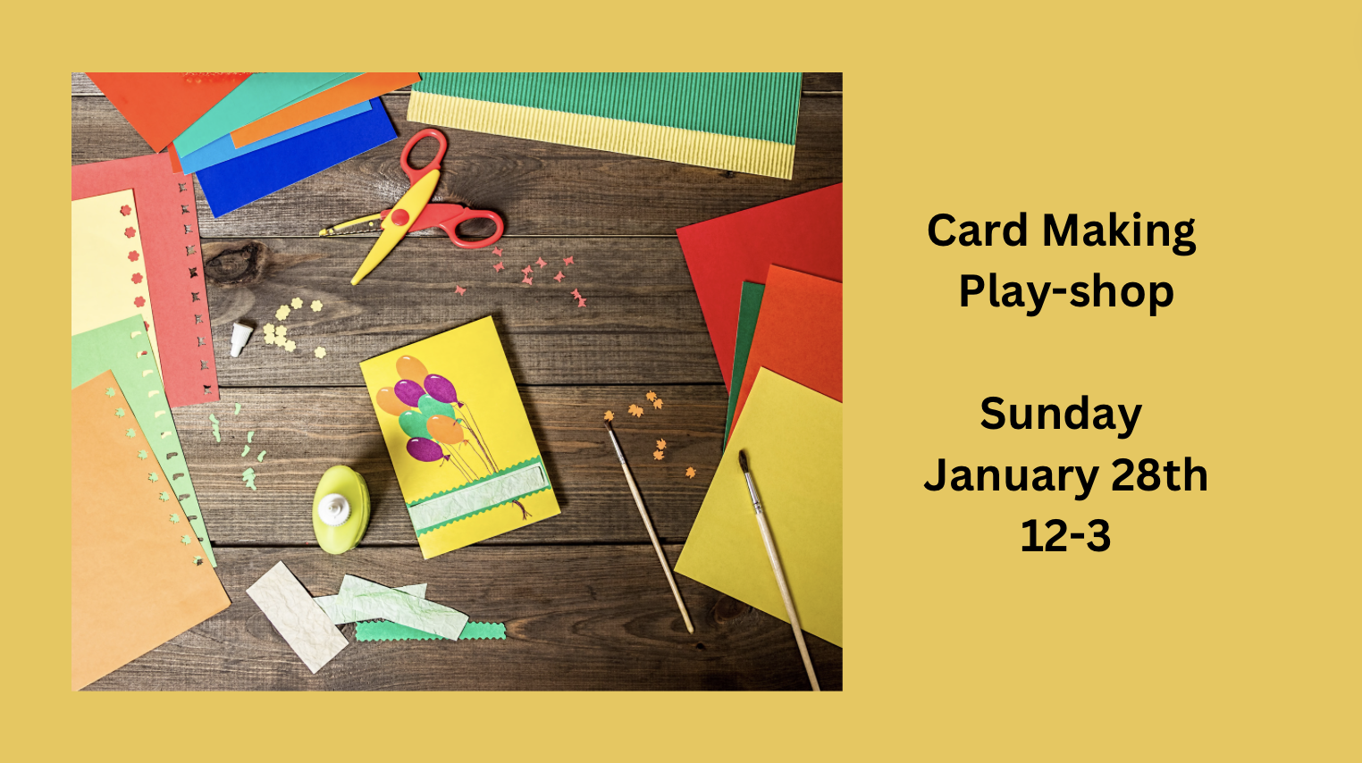 Join us on Sunday, January 28th at our office on El Camino Real from noon to 3pm for a card making Play-shop! Marilee Clemons and Jody Burton will provide everything you need to make as many cards as you would like. In addition to making cards for your friends and family we will be making...